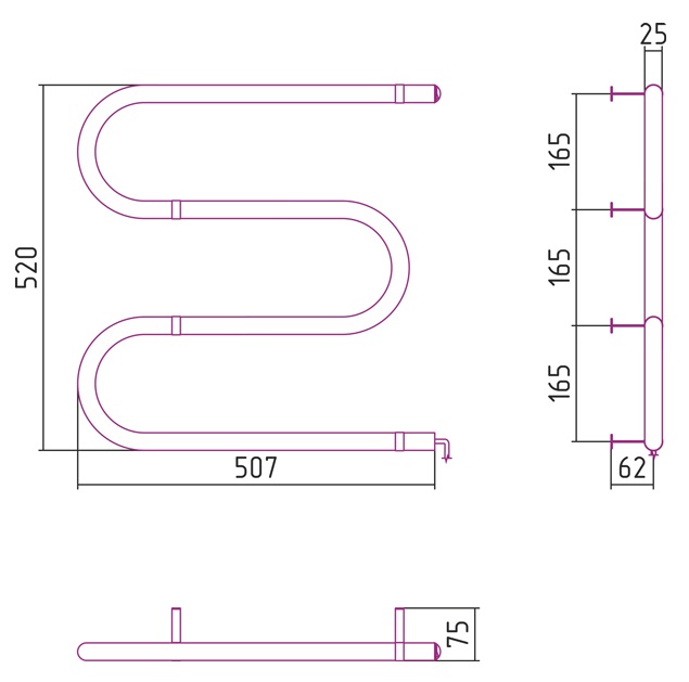 —Полотенцесушитель электрический Стилье №03 М-образный 500*500 (53 Вт)