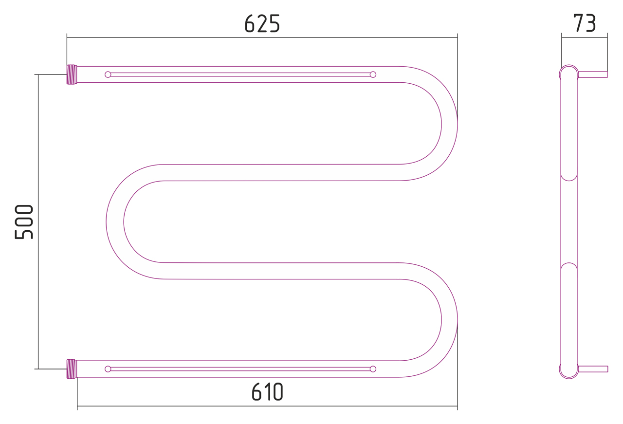 —Полотенцесушитель водяной Стилье М-образный 2П 500х650 резьба-сгон 1"