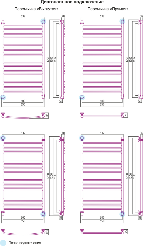 Диагональное подключение, см