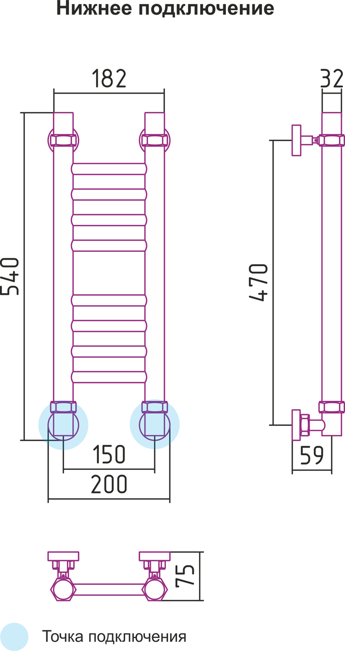 Горизонтальное подключение, см