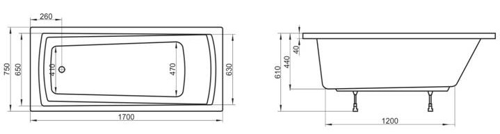 Ванна акриловая Ravak DOMINO C631R00000 170x75 см.
