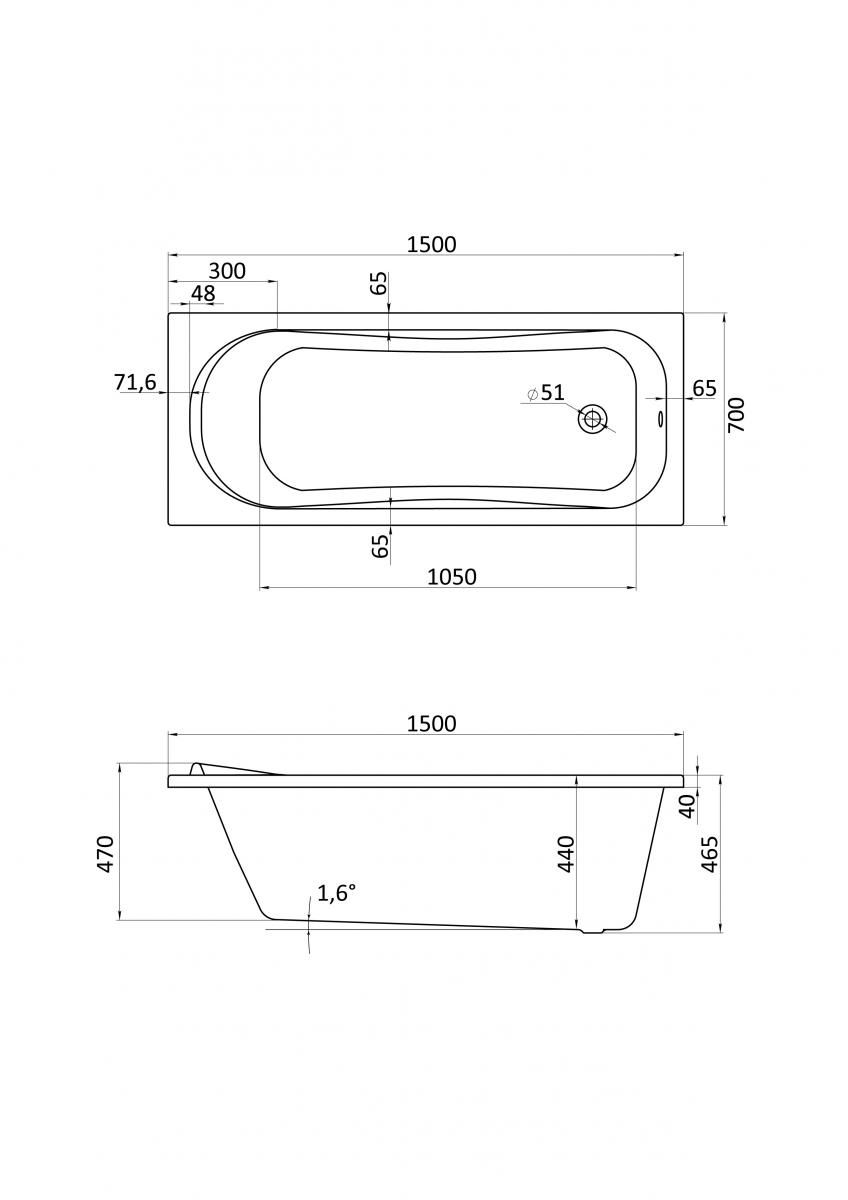 Ванна акриловая Santek ТЕНЕРИФЕ 1.WH30.2.213 150x70 см.