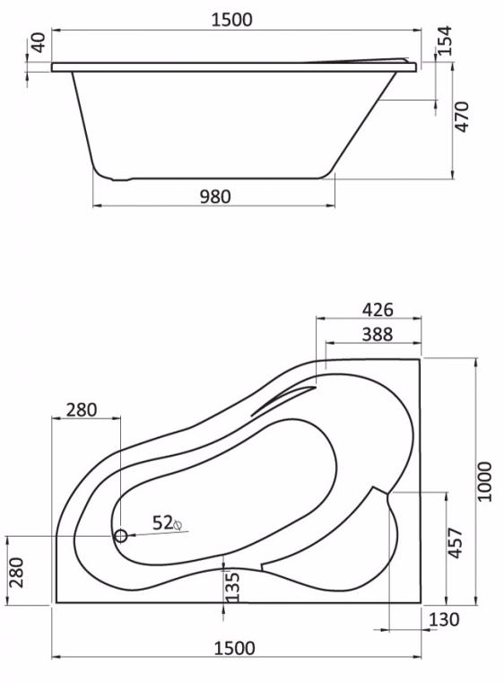 Ванна акриловая Santek ИБИЦА 1.WH11.2.034 150x100 см. левая